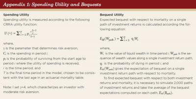 Measurement of spending satisfaction. The approach used to measure the utility of spending in this paper is different than in Pfau’s (2013a) study, but it is consistent with another presentation by Pfau (2013b), where he found consistent results. In this paper, a constant relative risk aversion (CRRA) utility function with moderate risk aversion was used.9 The utility function has the same form as the one used in Finke, Pfau, and Williams (2012) (see Appendix 1).