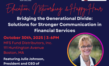 Thursday, October 30, 3:00-6:00pm FPA NexGen hosts "Bridging the Generational Divide: Solutions for Stronger Communication in Financial Services", Education & Networking Event, at MFS Fund Distributors in Boston, MA