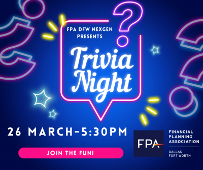 Join us for a fun and engaging evening at the FPA DFW Trivia Night, Powered by NexGen, an exciting opportunity to connect with fellow members, network, and challenge your knowledge in a friendly trivia competition! This event is designed to help foster new mentor-mentee relationships, come out if you’re interested in learned from our experienced members & if you have valuable knowledge and insights to share!