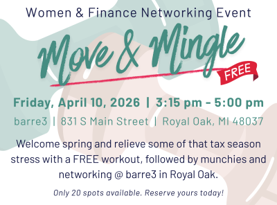 Join the FPA of Michigan’s Women & Finance Knowledge Circle for a barre3 Signature 45 class! This full-body workout combines strength, cardio, and mindfulness for a balanced and energizing experience, all while being low-impact and adaptable for every fitness level. Whether you're new to movement or a seasoned pro, you'll leave feeling strong, centered, and supported. Learn more at barre3.com. You are welcome to wear non-slip socks or participate barefoot.