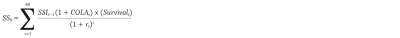 Equation 1 was used to find the initial value of the expected Social Security payments at age 67 SS0: